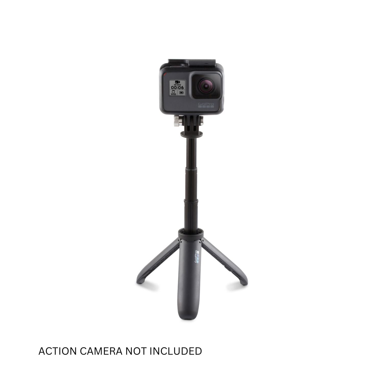 For locked-down shots, simply secure your HERO camera’s frame or housing using the standard 3-prong accessory interface, position the tripod where you need it, extend the pole for extra height, and start filming.